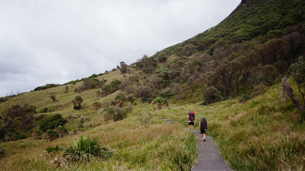 On roule de Sydney jusqu’à Otford Ocean Lookout où l’on y laisse notre voiture garée. Je découvre leur niveau de préparation : gros sacs de randonnée, toile de tente et tout le matos de trekking. Bien évidemment, je n’ai rien de tout ça. Je suis en PVT, j’ai toute ma vie minimaliste qui tient dans mes deux sacs à dos, zéro affaire de camping.